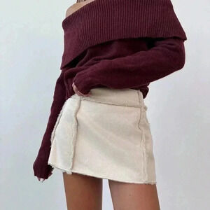 Burgundy Casual Women's Off-Shoulder Long-Sleeved Knitted Sweater