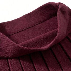 Burgundy Casual Women's Pleated Knit Sweater & Mini Skirt Set