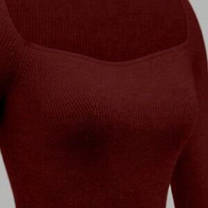 Elevate your casual wardrobe with this burgundy ribbed knit top, designed for a slim fit and featuring a queen anne sweaterheart neckline, long sleeves, and a regular length for a comfortable pullover style.