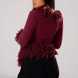 Burgundy Casual Women's Shaggy fringe detailed Knit Cardigan