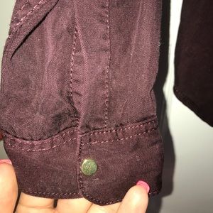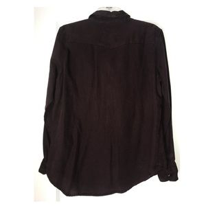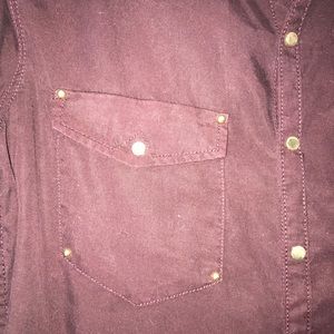 Burgundy studded chambray shirt from H&M. Dark burgundy with gold studs in front and studded snaps. Two chest pockets. 100% Lyocell. NWT. Disclaimer: color was hard to photograph in my lighting. Photos 6&7 are accurate representation of this dark burgundy color in *sunlight*.