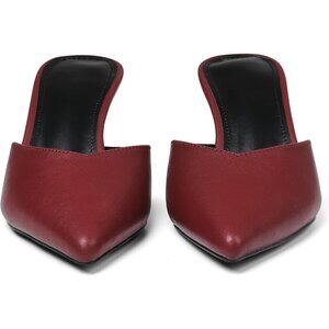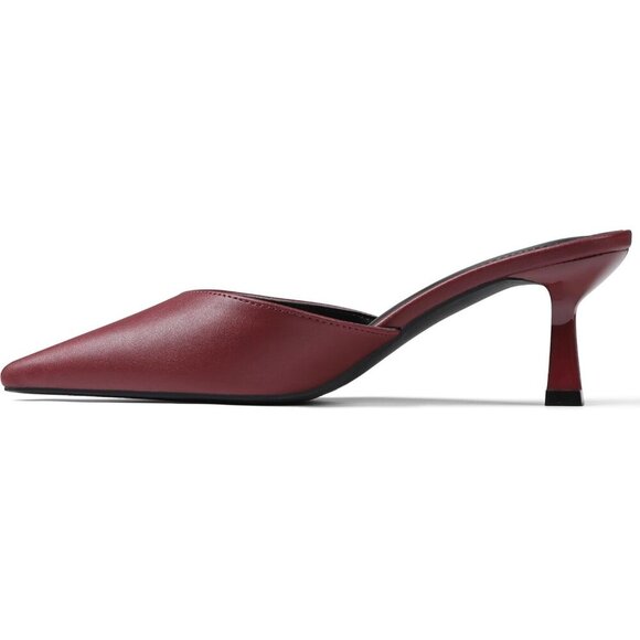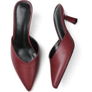 Burgundy Closed Pointed Toe Stiletto Slingback Heels Black Mules for Women