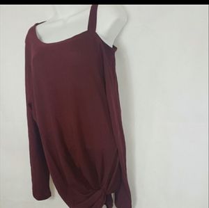 Burgundy Cold Shoulder Knit Long sleeve knot top M