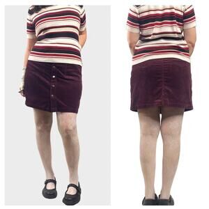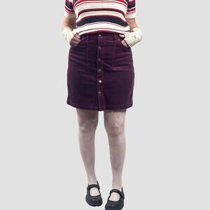 Burgundy Corduroy Button Front A Line Pocket Skirt Sz 12