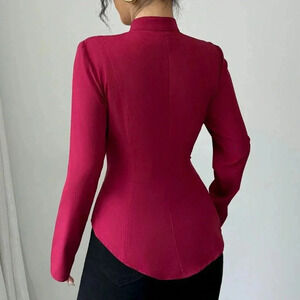 Burgundy Elegant Women's Chic Hollow Out Front Stand Collar Asymmetrical Blouse