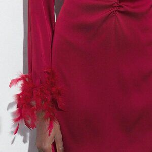 Burgundy Elegant Women's Hollow Feather Cuff Ruched Dress