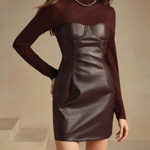 Burgundy Elegant Women's Semi-Sheer Long Sleeve Elastic Crew Neck Blouse