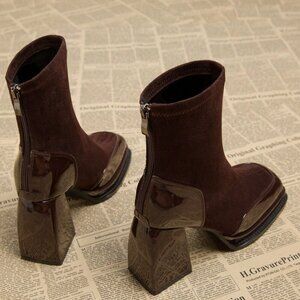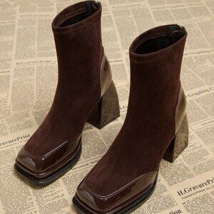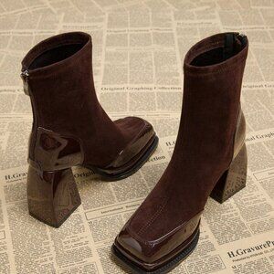 Burgundy Elegant Women's Waterproof Platform High Heel Boots