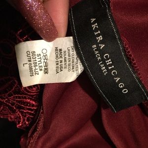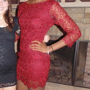 Short fitted dress. Size Large. Embroidered. Burgundy. Low cut back. Worn once.
