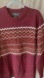 Burgundy White and Yellow Fair Isle Print Crewneck Long Sleeve Pullover Knit Sweater