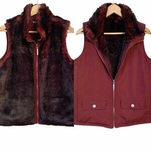 Burgundy Faux Fur Reversible 2 in 1 Vest Size Small