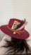 Burgundy Fedora Hat with Feather and Card Key Detail