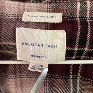 Soft and comfy American Eagle plaid flannel shirt in burgundy, pink and white in excellent condition and size Medium. Measurements 20 inches pit to pit and 27 inches in length. #plaidflannel