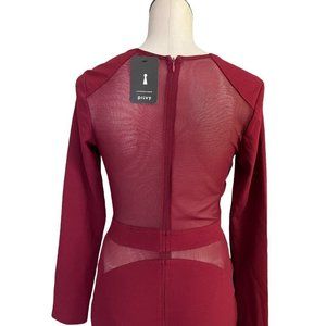 Burgundy Floor Length Grown Deep V-Neckline Mesh Panels Long Sleeve, Privy Brand, Size Large