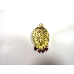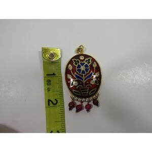 Burgundy Floral Bead Rhinestone gold Tone Peandant 2" Boho Cottagecore Whimsical
