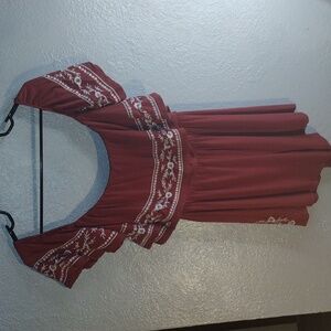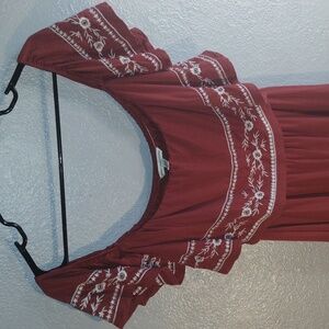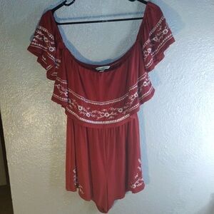 Burgundy Floral Embroidered American Eagle Romper XS. Excellent condition.