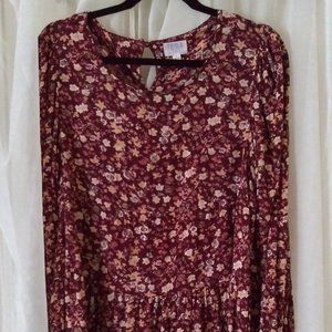 Burgundy Floral Print Ruffle-Hemmed Blouse Size L