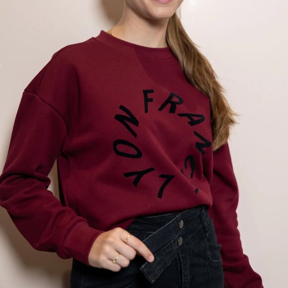 Cute franc graphic french terry sweatshirt in a pretty burgundy color with black raised lettering