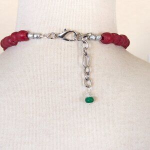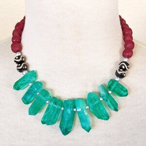 - New & Handmade - Materials: Green Crystal Quartz Stick Beads, Red Recycled Ghana Glass, Black & White Batik Accent Beads, Silver-Plated lobster clasp and extender chain. - Length: Approx: 17 1/4 with 2 1/2" extender chain