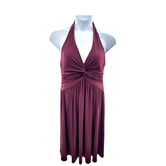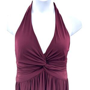 Jones New York Women's Halter Dress Size 16 Burgundy Twist Front Flowy