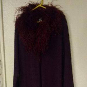 Burgundy Knit Maxi Coat with Feathered Collar✨