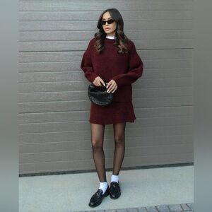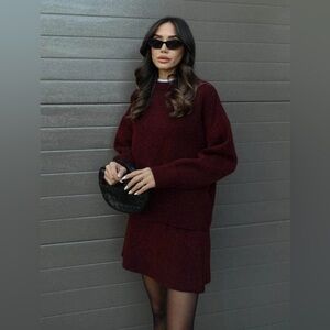 Cute set I bought off an IG ad. Took MONTHS to arrive! Size S. It’s new but it has NO tags. Let’s just call it a white label… It’s a lovely burgundy. Not as dark and rich as the advertised photo but it’s still darker than the pics I took… if that makes sense. Wonderful thick fabric. The skirt fits so lovely. The sweater is shorter on me, but I have a long torso, so that’s to be expected. It’ll fit lovely on a shorty 😘 If youve seen this fit on your feed.. well here’s an honest review and look at it! Great fabric and construction. Not as dark as advertised but still a great color. Offering for half the price I bought it and quicker shipping. Enjoy!