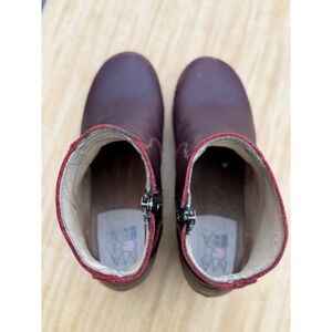 Keywords: clog boots, ankle booties, leather boots, burgundy boots, wooden heel boots, womens boots, size 38, eu 38, red boots, fall boots, autumn boots, casual boots, comfortable boots, round toe boots