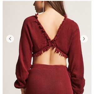 Burgundy Long Sleeve Crop Top