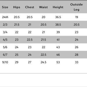 Size Chart Included in Slides -