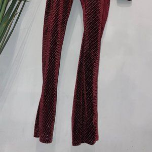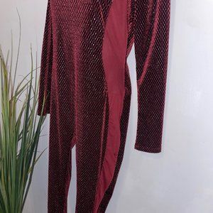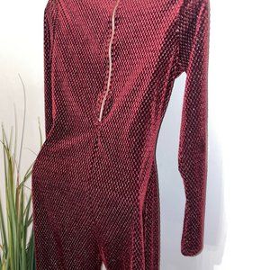 Burgundy Long Sleeve Velvet Jumpsuit