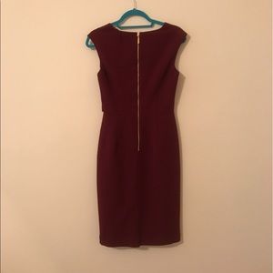 Never worn. Deep maroon color, gathered detail at the waist, exposed gold back zip.