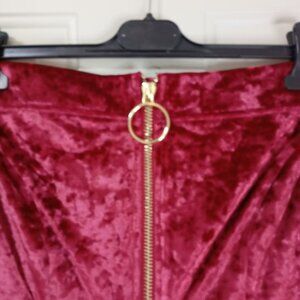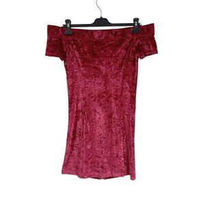 Burgundy Off-Shoulder Velvet Mini Dress With Gold Zipper Front By Essue Size M