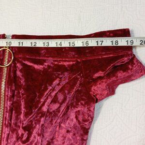 Burgundy Off-Shoulder Velvet Mini Dress With Gold Zipper Front By Essue Size M