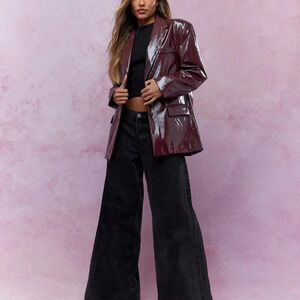 Burgundy Party Women's Shiny Faux Leather Oversized Blazer