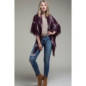 Burgundy Plaid Frayed Fringe Blanket Scarf