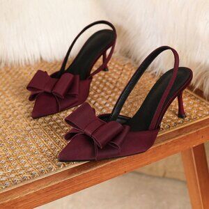 Burgundy Preppy Women's Pointed Toe Low Vamp High Heel Shoes