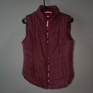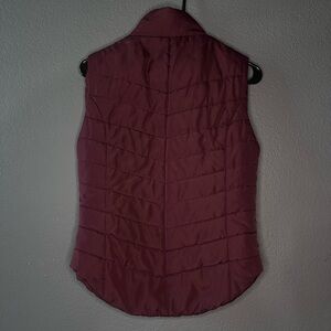 Chic maroon quilted vest with front zipper. Ideal for layering.