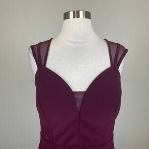 ~ Sleeveless ~ Sweetheart neckline with mesh insert ~ Sheer shoulder straps ~ Sheer illusion back styling ~ Thigh slit ~ A-line silhouette ~ Padded bra cups ~ Concealed back zipper with hook and eye closure ~ Lined ~ Stretchy polyester/spandex
