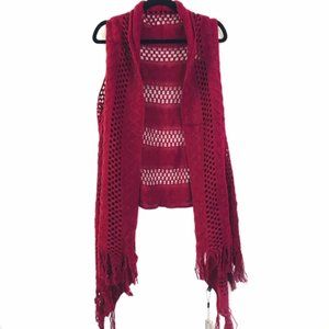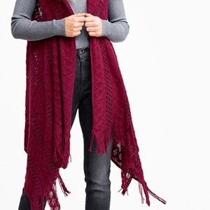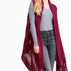 Burgundy Red Crochet Knit Boho Open Front Cardigan