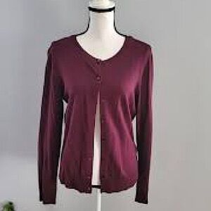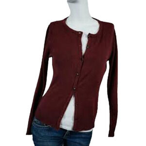 Burgundy Red Dark Button Down Cardigan Sweater NY & Co Size Small GUC