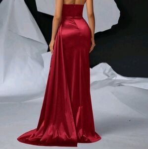 Burgundy Red Elegant Luxury Strapless Neck Ruched Decor Asymmetric Evening Dress