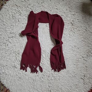 Burgundy Red Fleece Scarf Winter Fall Accessory Basics Classic Gorpcore Ski with Fringe ️