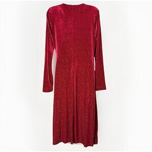 Burgundy Red MD Velvet Burnout Swirl V Neck Sleeved Wrap Dress Holiday Romance