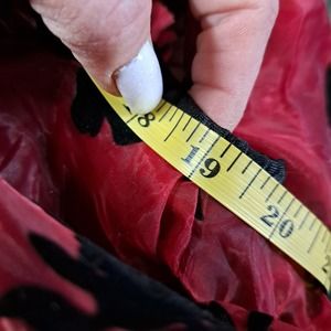Burgundy Red sheer high low black flocked floral skirt M/L