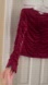 Burgundy, Ruched-Fitted-Long Sleeves, Rosettes Trim Top.