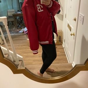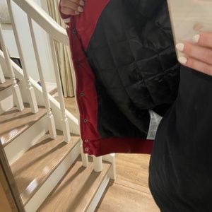 Vintage look baseball bomber jacket. Feels really silky and very good quality. Letter B monogrammed on front.