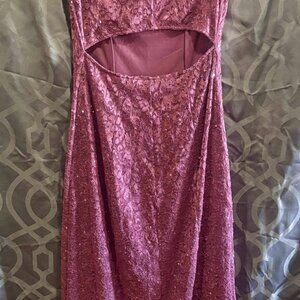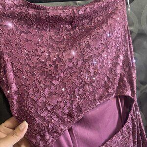 Burgundy Sequin Lace Evening Gown – Size M