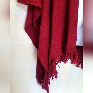 Stylish Burgundy poncho with fringe detailing. Open front design.
