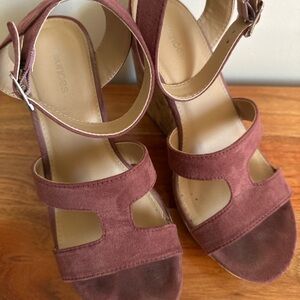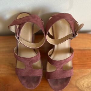 Burgundy Wedge Sandals with Ankle Strap