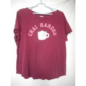 Burgundy White Old Navy Chai Harder Women's crew neck T Tee TShirt